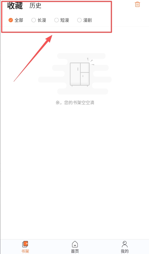 4、个性化管理您的阅读内容,在这里您可以查看收藏记录与阅读历史,并将喜爱之作加入书架。
