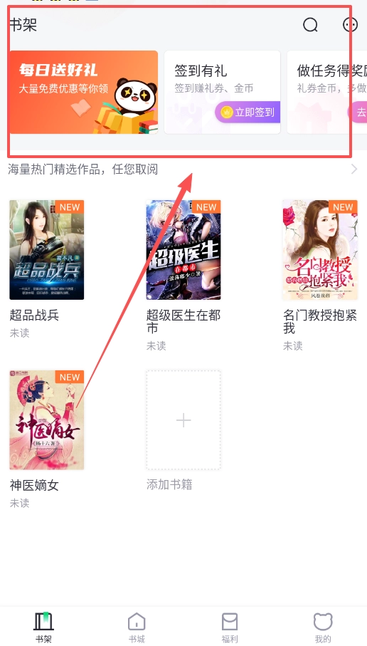 1、书架是展示所有收藏书籍的主界面,记得常来签到领取阅读福利,打造专属于你的数字阅读空间。