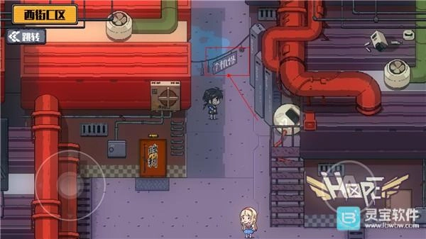 4、出门后顺着路牌指引一路往上走就能到修理铺。路上碰到其他角色时,只要靠近就能和他们对话,从对话里能知晓更多剧情的细节。