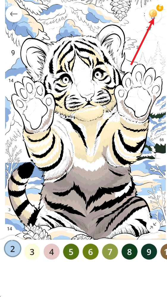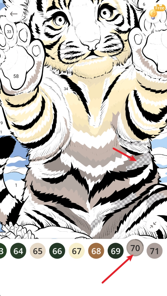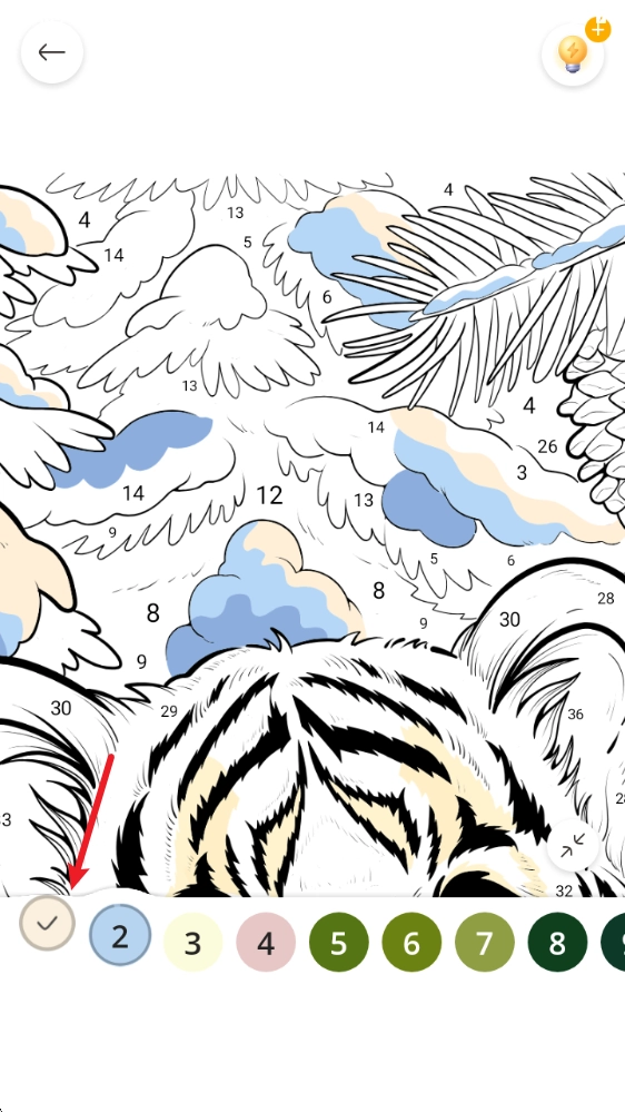 4、点击下方标有数字的颜色选项,图中便会显示出与之对应的区域,点击该区域即可进行涂色操作。