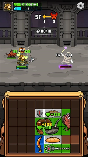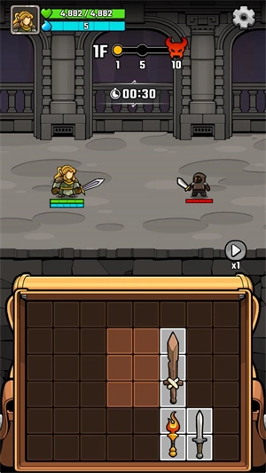 3、待所有物品都放进背包后,点击楼层按钮就能开启战斗,角色会自动进行战斗。