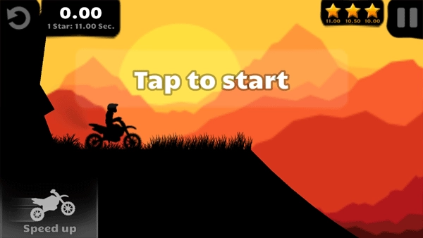 3、还可以点击左侧 “Speed up” 按钮加速,腾空时滑动设备可触发前空翻、后空翻等特技。