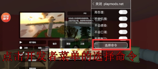 1、进入游戏后打开菜单,点击并选择“命令”选项。