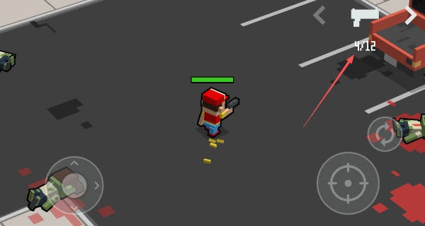 1、玩家通过左侧按钮操控角色移动,右侧按钮用于射击和攻击,消灭场上的僵尸。