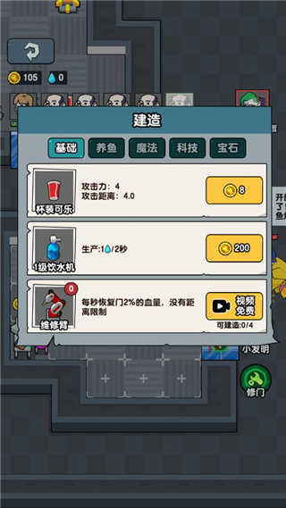 10、为了可以击败老板,玩家还需要在闲置的地方种植可乐、饮水机等装备