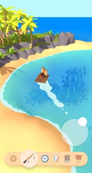 2、进入海岛之后,操控着木筏前往海上抓鱼,合理的使用工具。