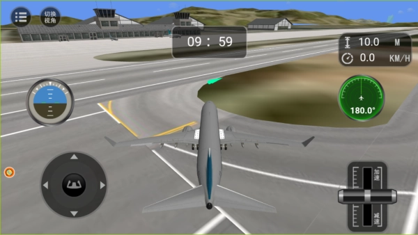3.将右侧的按钮向上推即可让飞机行动起来,再使用左侧方向盘来调整方向。