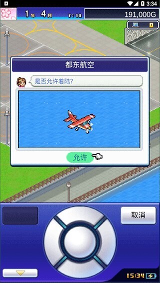 5、当设施齐全时,我们就可以接纳五湖四海的游客了,点击允许飞机着落,他们就在可以机场休息并且消费