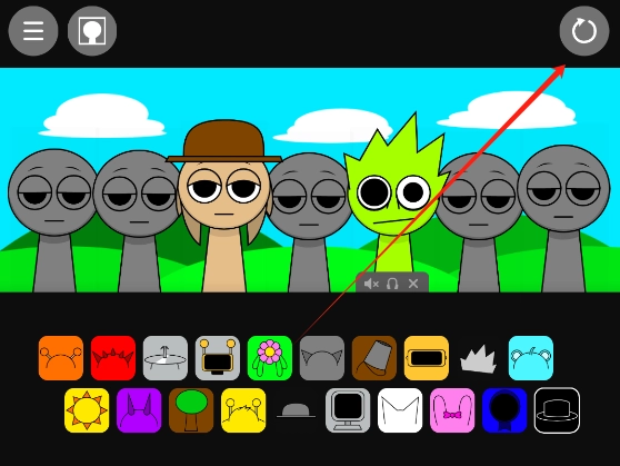 1、这款游戏的玩法和其他节奏盒子类游戏相近,把装饰物拖拽到人物身上就能创作出音乐