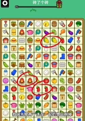 1、进入游戏后,先把连在一起的两个物品消除掉。