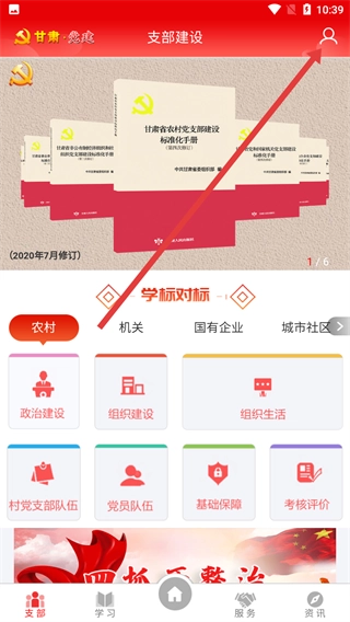 1、进入“支部建设”页面后,点击右上角的人像图标,系统会弹出登录注册的提示弹窗。
