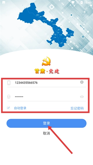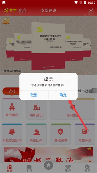 2、在提示弹窗中,点击【确定】按钮,进入甘肃·党建登录页面。