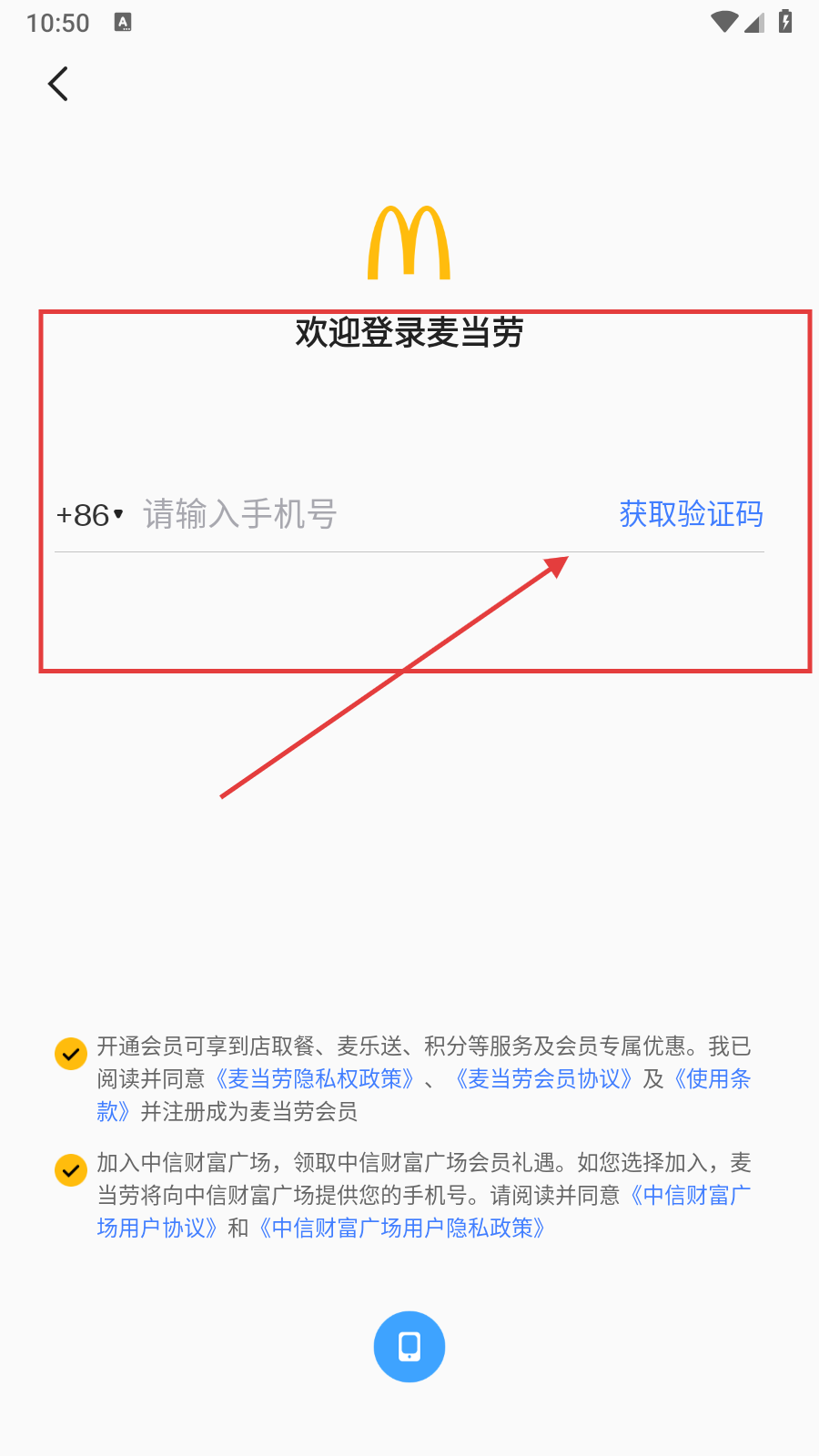 4、在登录界面,输入手机号并点击【获取验证码】,完成验证码输入后即可登录,享受会员服务及优惠。