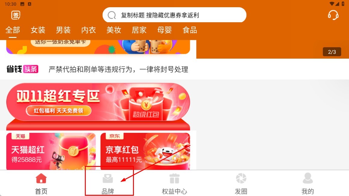 1、点击底部的【品牌功能按钮】,进入品牌页面。