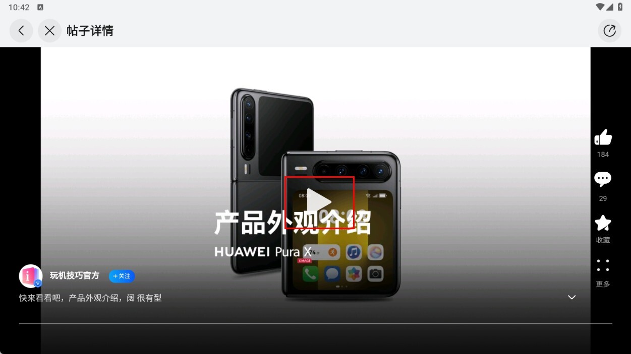 4、进入帖子详情页后,点击【产品外观介绍-视频播放按钮】,观看产品外观介绍视频。