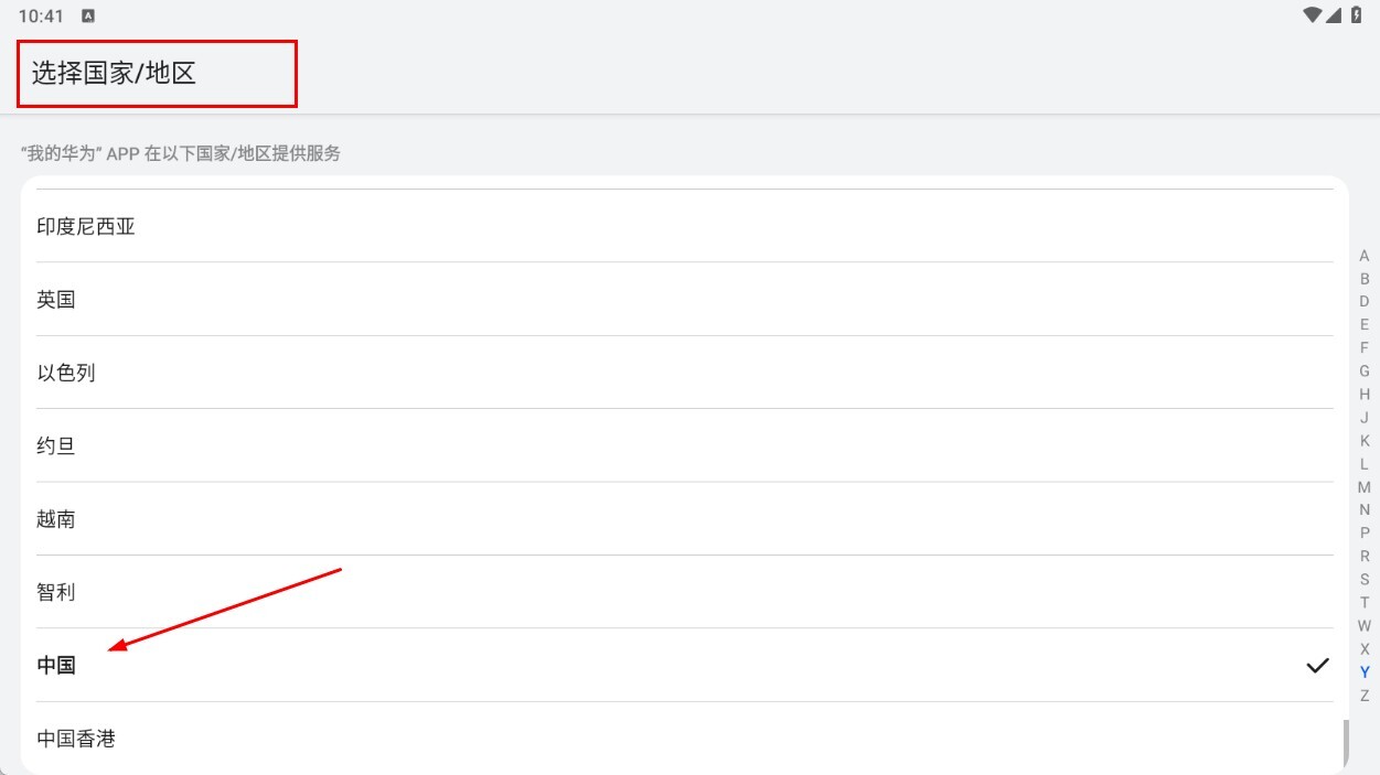 1、在国家/地区选择列表中,点击【中国-地区选项】,即可完成地区选择。