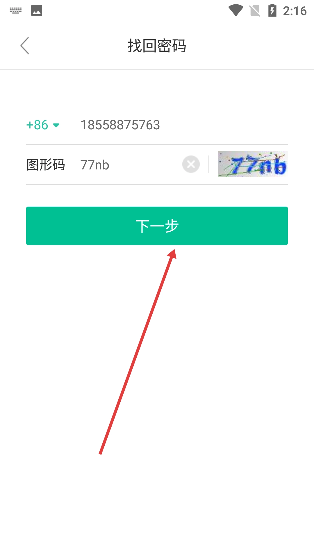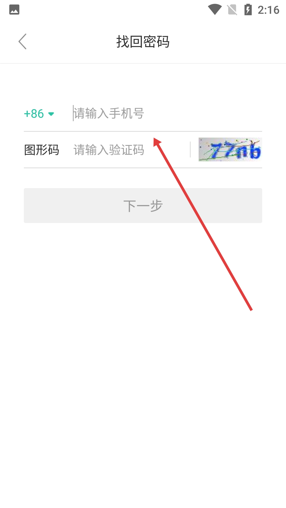 3、在找回密码的输入界面输入【手机号】和【图形码】。