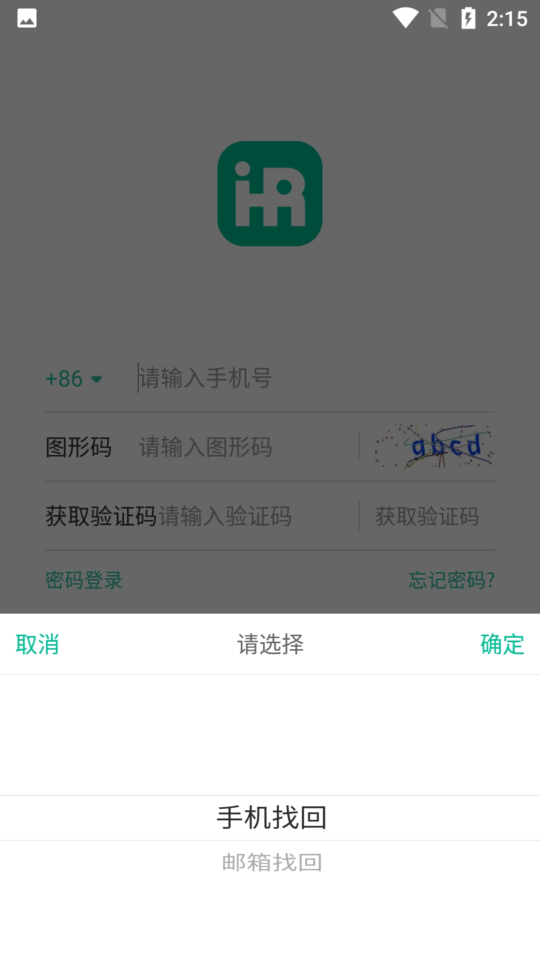 2、在找回密码的选择界面选择【手机找回】,进入找回密码的输入界面。
