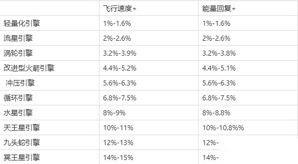 各星阶引擎级别属性提升范围如下表所示: