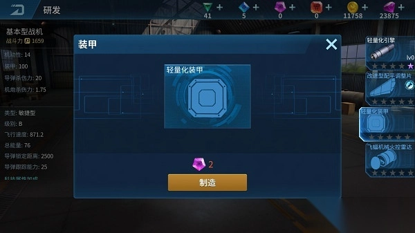 4、丰富的科技研究功能,您可以在游戏制作不同的战机部件,可以升级自己的战机