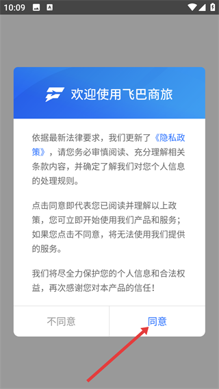 2、加载完成后,会弹出【隐私政策】说明框,务必审慎阅读后点击“同意”,才能继续使用软件的产品和服务。