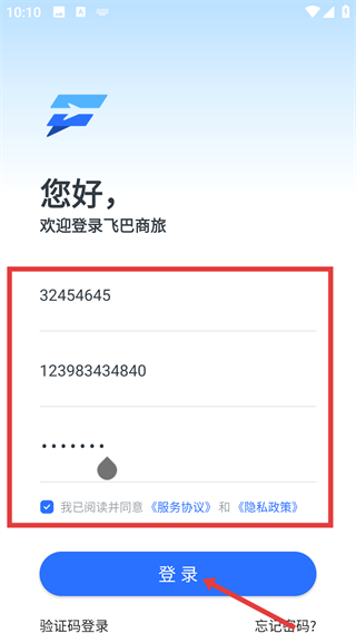 4、在账号密码登录页,输入对应的账号、密码,勾选同意【服务协议】和【隐私政策】后,点击“登录”按钮即可进入系统。