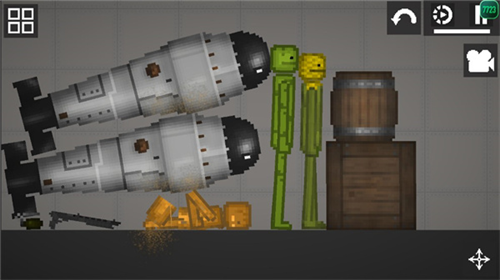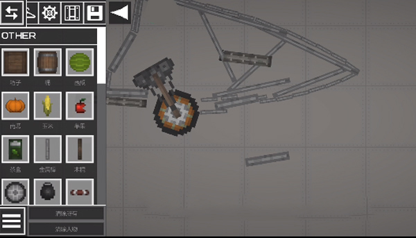 2、进入游戏如图,点击左上角菜单按钮,添加两个物品在地上;
