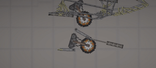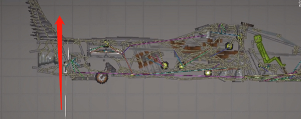 3、需要注意的是,这种不稳定的结构一定要加上支柱,即机头中间的长铁块,调成无重力不碰撞,链接到机头外壳即可