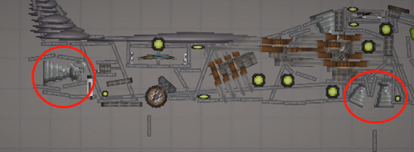 7、关于机身的结构,如果你不是直接一条金属横梁直着过来的话,支柱也是必须的,用它链接尽可能多的金属块,可以保重飞机不会变形