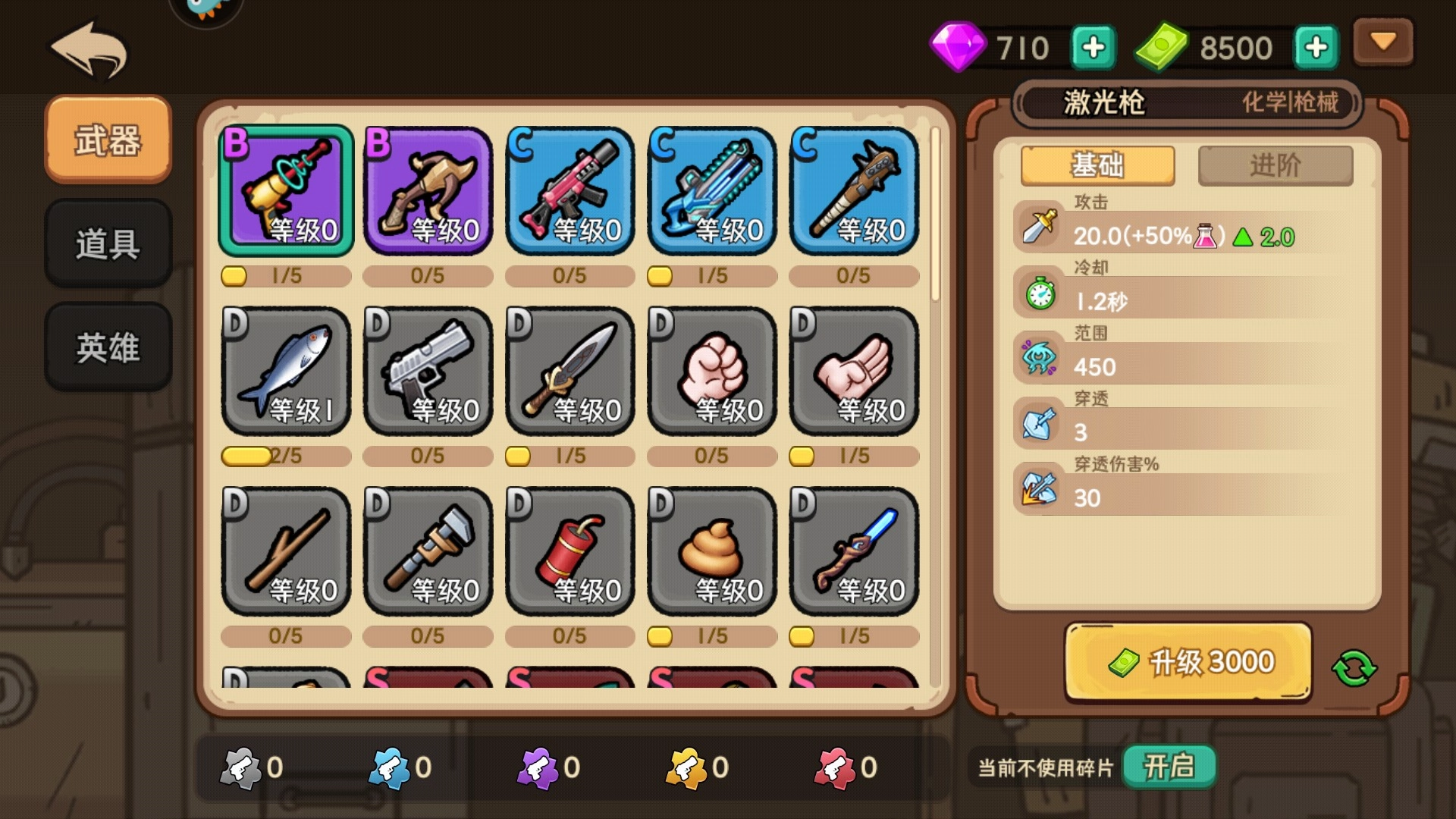 3、尽量用来购买武器,相同的武器可以合成,伤害更高。