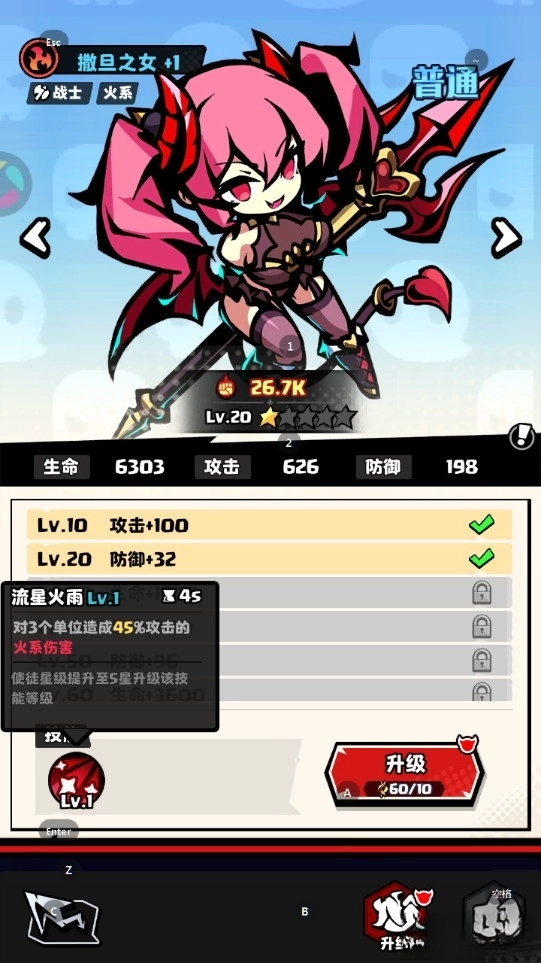 新手前期推荐优先升级撒旦之女和寒霜祭祀。前期这两个角色里,撒旦之女是能扛能打的战士,寒霜祭祀带有回血技能,二者搭配可以顺利通过大部分关卡。