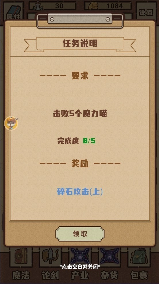 2、不断点击屏幕,打败魔力喵,可以开启自动战斗。