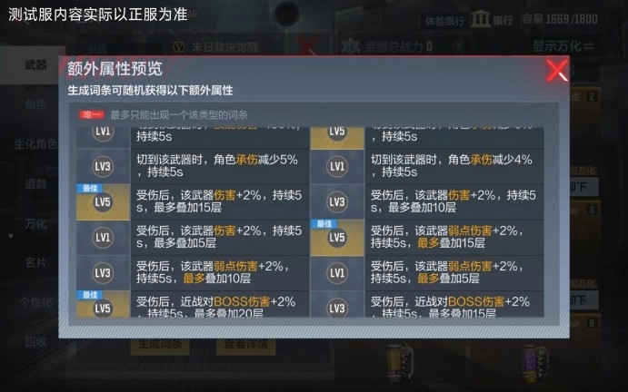 除了这四个唯一词条外,末日裁决觉醒还有众多实用的词条类别。角色承伤减少类词条,能在不同情况下降低角色所受伤害,进一步增强生存能力;角色移速提高类词条,则能让玩家在战场上的机动性更强;同背包主武器相关的词条,如弹匣子弹数增加、后坐力减少、散发减少、换弹速度提高等,能优化主武器的性能,提升整体战斗能力。而伤害增加类、弱点伤害增加类、近战时对BOSS伤害增加类等词条,从不同角度提升了武器的输出能力,帮助玩家在面对各类BOSS时都能更高效地造成伤害。