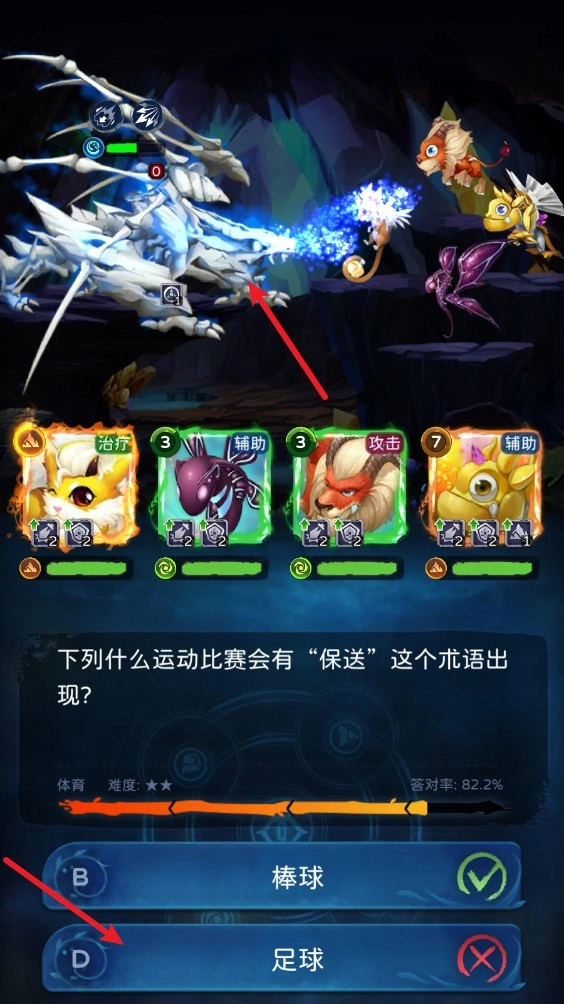 2、进入战斗后,我们需要选择对应属性的题目来控制宠物进行战斗。