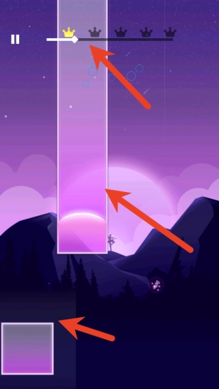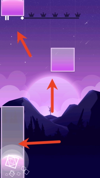 1、跟着音乐的节奏,对屏幕上出现的发光音符方块进行点击、滑动或者长按操作来完成任务。