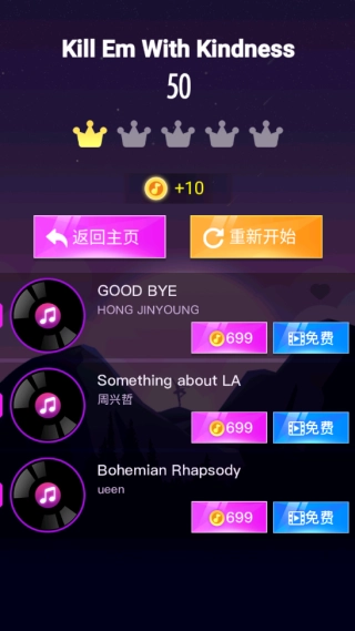 3、完成每首曲目后可获得评分和奖励,用于解锁新歌曲和个性化皮肤。