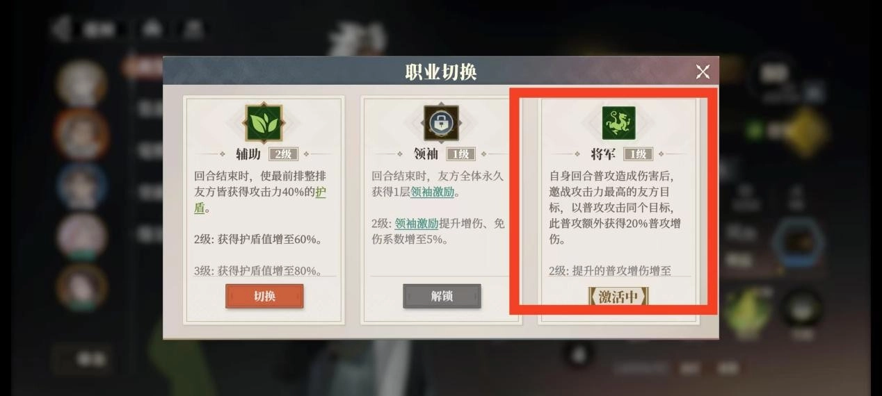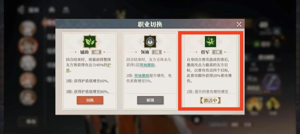 刘备转职【将军】普攻可邀战主C攻击,增加输出。