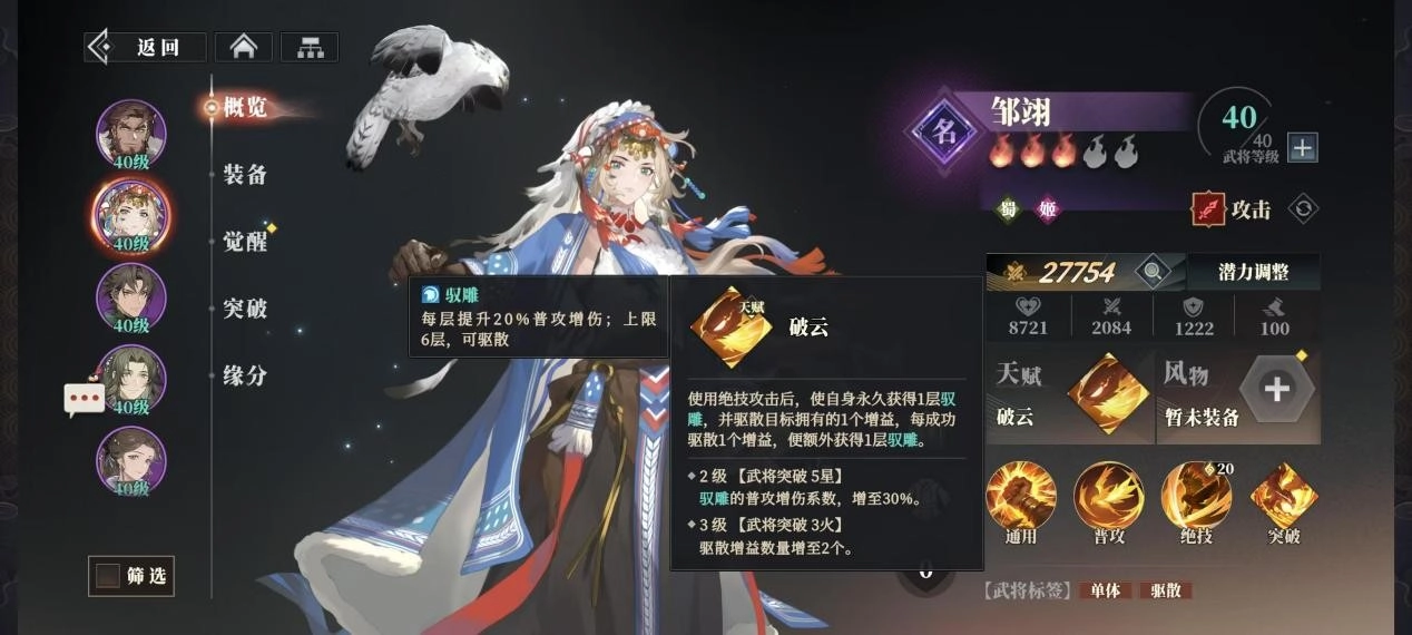 孙尚香、邹翊均转职【骁将】提升长线输出能力,与她俩的叠层机制契合,都需要时间堆叠。