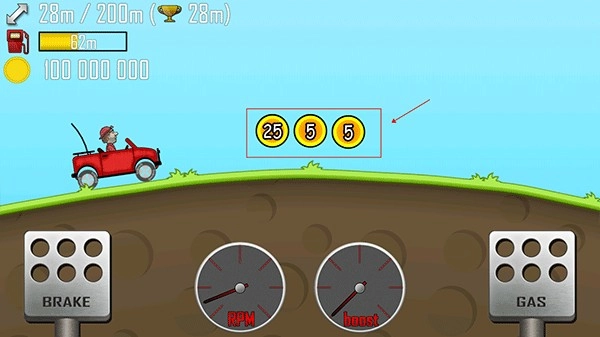 4、途中会有很多带有数字的金币,玩家将其收获后可以获得将对应的金币数量