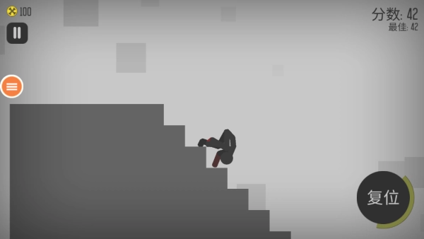 2.核心目标为控制火柴人从楼梯跌落,通过连续翻滚、撞击和空中动作获得更高分数。