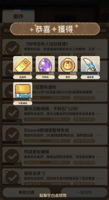3、到这一步就可以点开邮件领取大量资源开始快乐抽卡了。