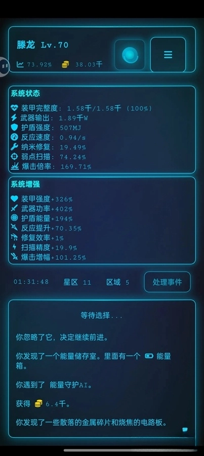 面对巡逻机械、星际海盗乃至泰坦巨兽,战斗绝非蛮力之争。通过动态文字指令系统,选择闪避、反击或孤注一掷的爆发。你的每个决策,都可能成为生存的关键。