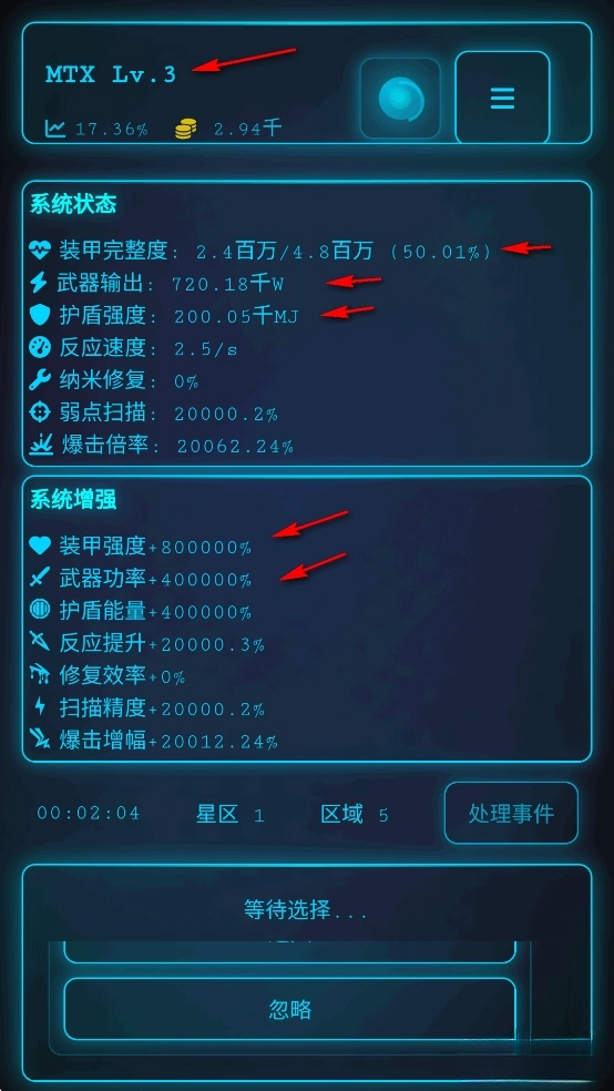 然后装备呢尽量带前期的数值,比如装甲,比如加攻强的武器,刷到个二三十级再慢慢推图,这个流派不吃装备,全部装备没有也能打,只吃等级,而且成型以后就是仙路尽头谁为峰一见无始道成空,因为只需要考虑按对面生命值加成的百分比伤害能不能一刀砍穿对面的生命和防御。
