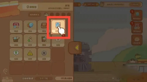 在菜单界面选择手账本选项。