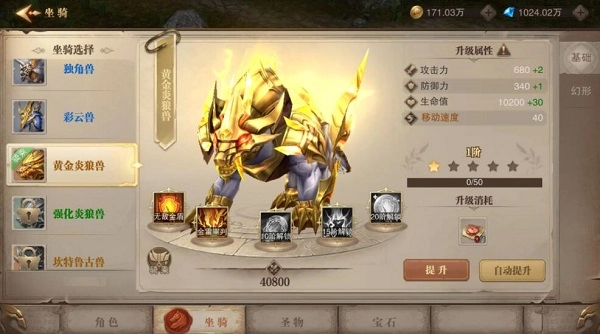 坐骑幻形拥有更加华丽的外观和强力的技能,但是无法进行升星和升阶养成。