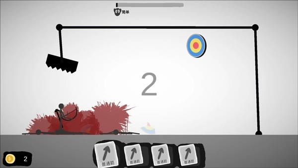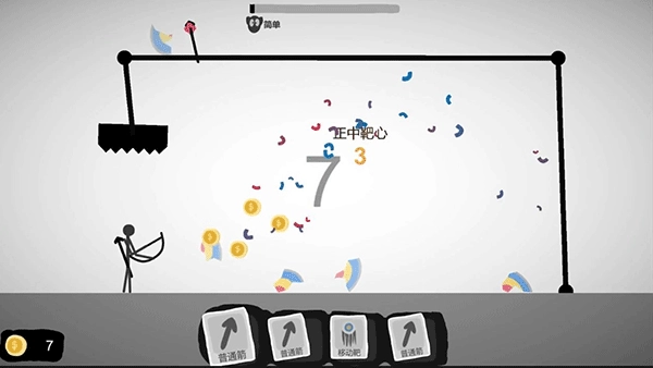 3、射偏惩罚:若不慎射偏切断绳索,火柴人被砸中即游戏失败。