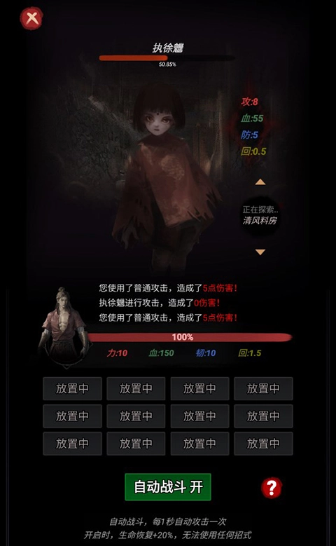 3、玩家可以通过点击屏幕控制李火旺攻击坐志道来进行修假历练,不断提升自己的实力。