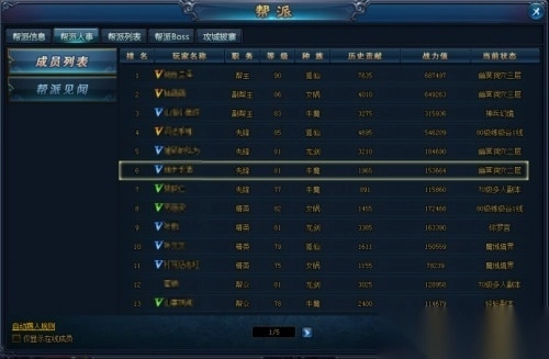 1、如图所示,在此界面可以查看当前帮派的成员信息。