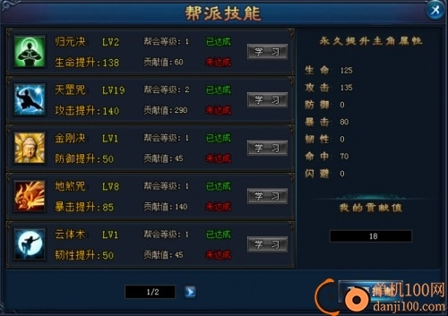 玩家可花费贡献度学习帮派技能提升自身战力