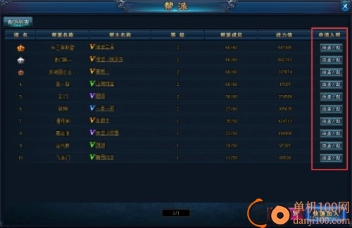 1、玩家未加入帮派时,可以看到一个本服当前所有帮派的列表